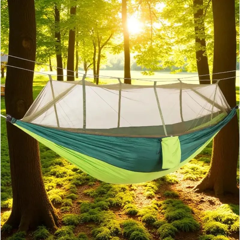 ```Гамак з москітною сіткою 220×120 см — туристичний підвісний гамак-кокон для кемпінгу та походів. Забезпечує комфортний відпочинок на природі та захист від комах завдяки вбудованій москітній сітці.