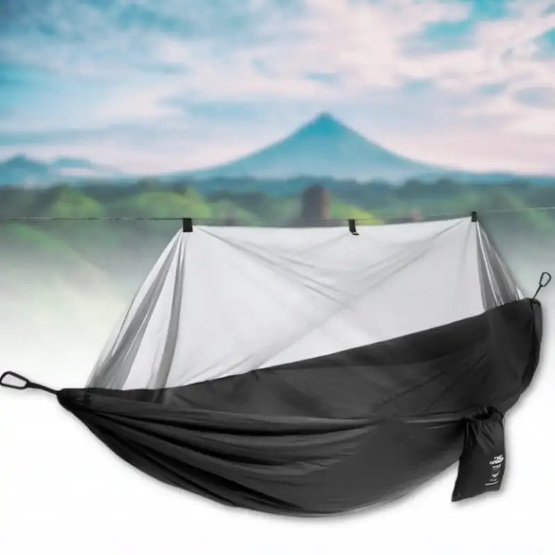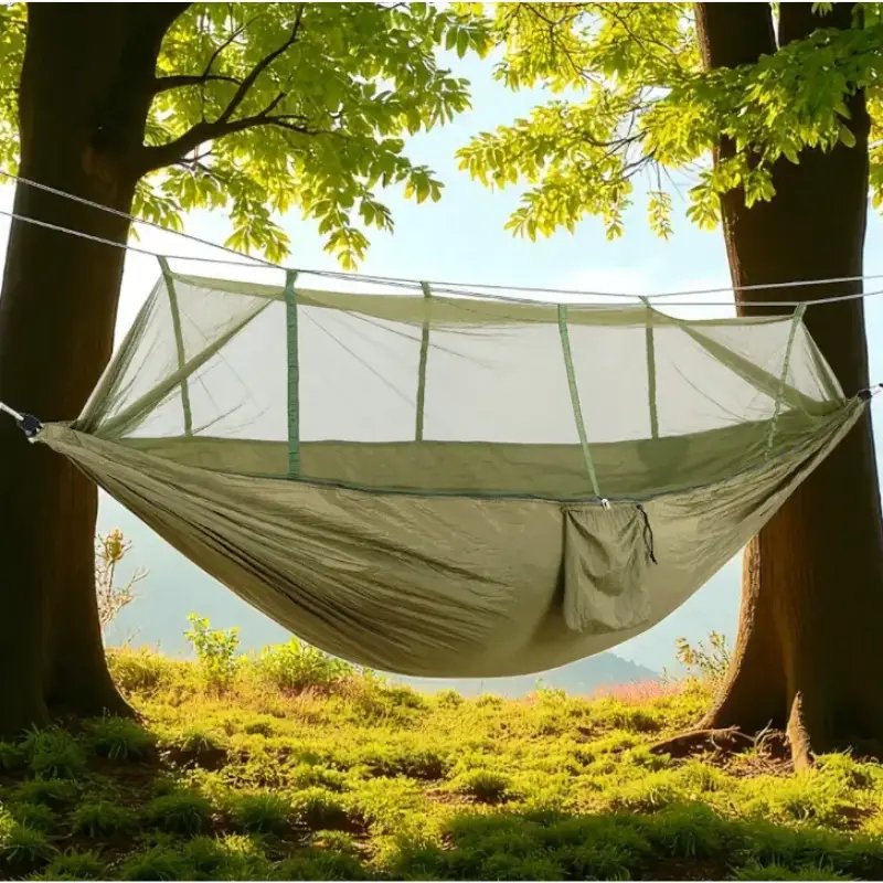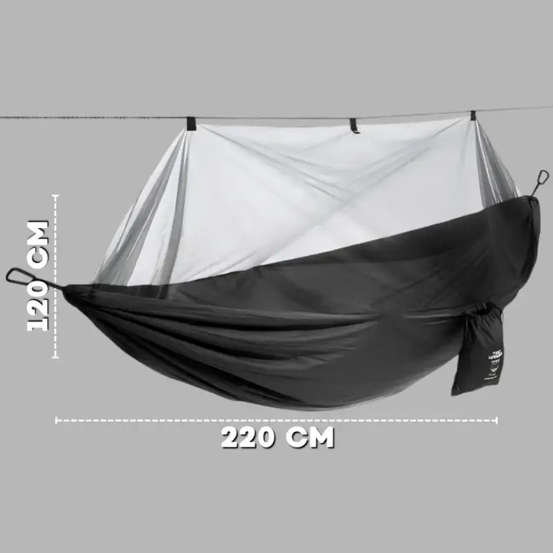 Гамак з москітною сіткою 220×120 см — туристичний підвісний гамак-кокон для кемпінгу та походів. Забезпечує комфортний відпочинок на природі та захист від комах завдяки вбудованій москітній сітці.
