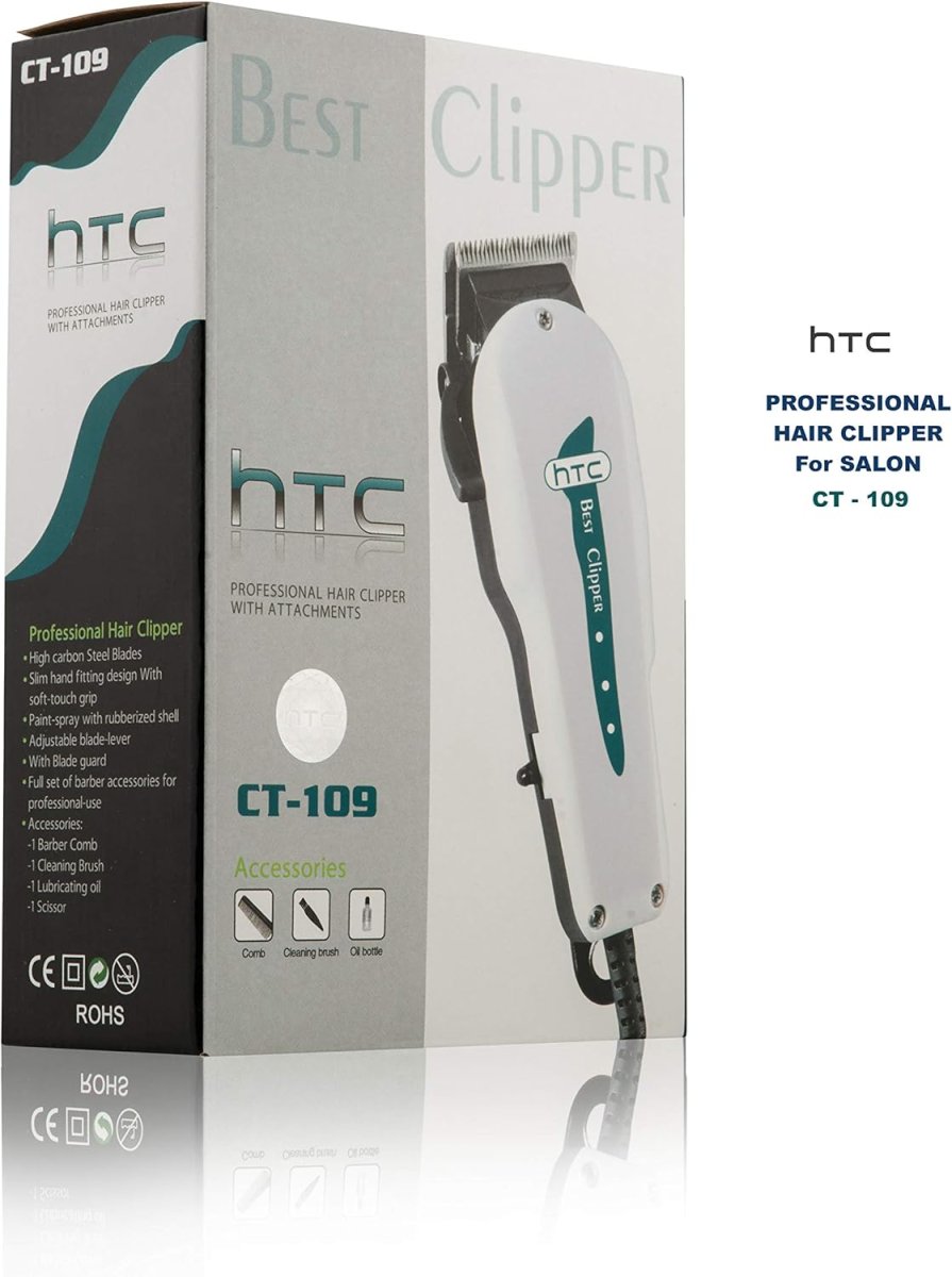 ```Універсальна машинка CT-109 — це практичний набір для догляду за волоссям: машинка для стрижки та тріммер для окантовки. Підійде для домашнього використання, допомагає акуратно підстригати довжину та робити рівні контури. Модель HTC Best Clippe CT-109 — якісний і надійний варіант для щоденного використання.