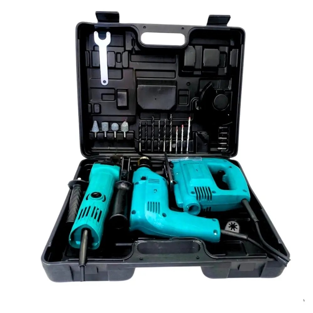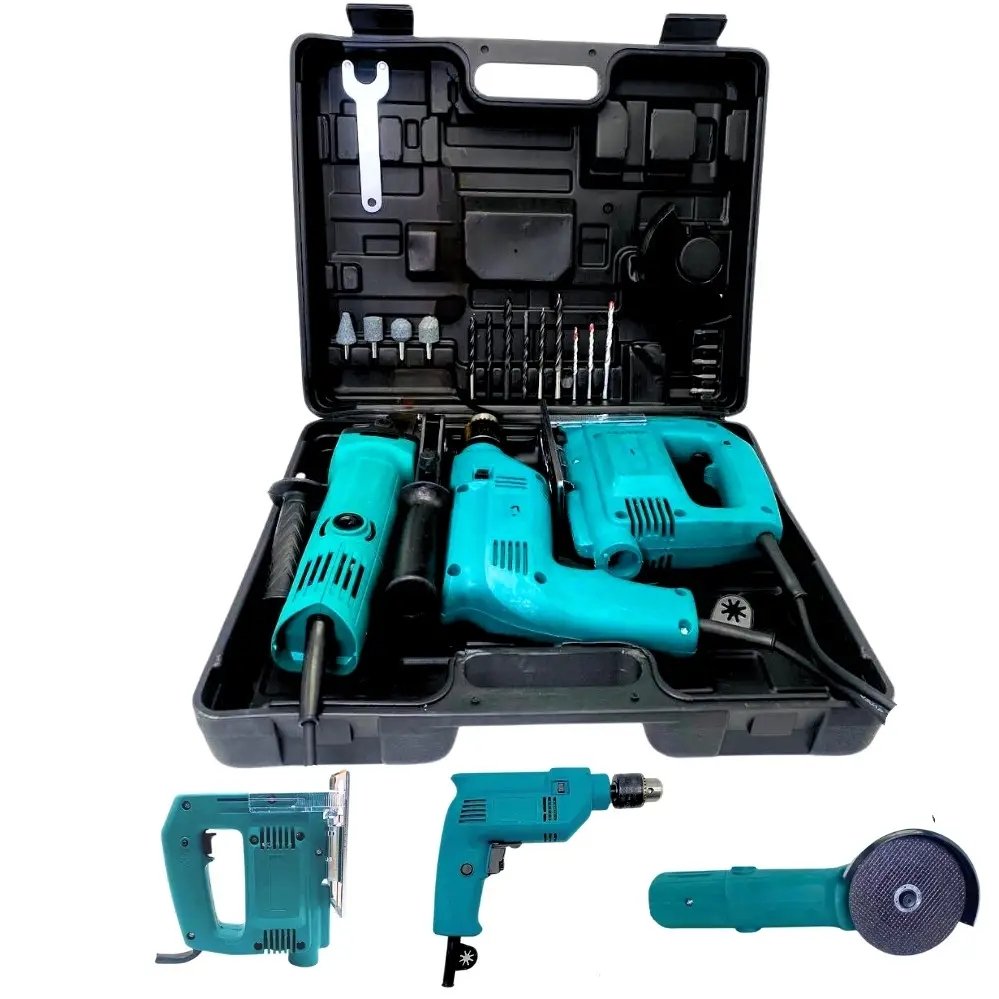 Універсальний набір електроінструментів 3-в-1: болгарка, лобзик, ударний дриль у кейсі