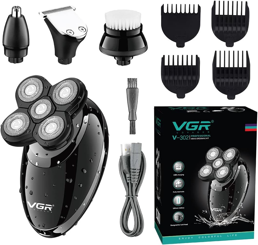 Водонепроникна бездротова електробритва VGR V-302 з набором насадок