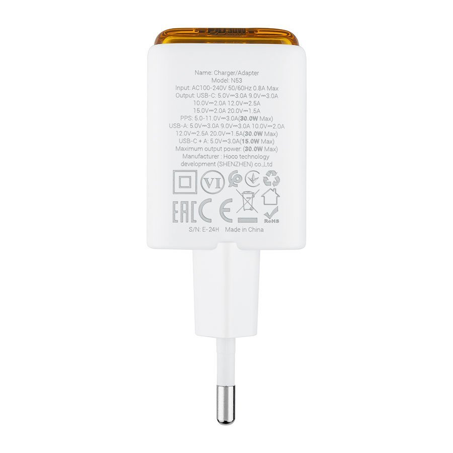 - Зарядний пристрій HOCO N53 Monsoon PD30W+QC3.0 білий 6942007630436-